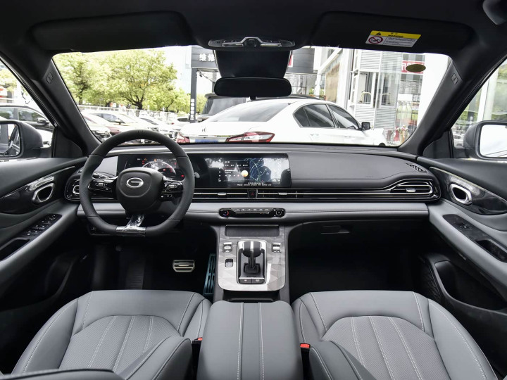 再来看车身侧面部分,车身采用短前悬、长轴距的黄金比例设计,整体姿态低趴流畅,贯穿车身的凌厉腰线从车头延伸至车尾,车门下方上提式的筋线营造出蓄势待发的姿态,搭配溜背式车顶设计,不仅凸显运动动感,还兼顾了后排头部空间,避免了溜背车型常见的空间压抑问题。车身尺寸方面,传祺影豹长宽高分别为4700(4753)/1850/1432mm,轴距达2736mm,定位紧凑型三厢轿车,车身尺寸在运动家轿中表现均衡,2736mm的长轴距为车内空间提供了充足保障。
