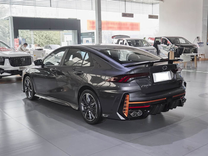 再来看车尾部分,车尾设计延续车头的运动格调,整体造型紧凑饱满,视觉重心偏低,完美呼应整车的低趴姿态,尽显运动家轿的核心气质。车尾配备分体式熏黑LED尾灯,造型狭长锋利,与车头大灯形成前后呼应,点亮后灯光效果细腻,夜晚辨识度极高;尾灯下方配备贯穿式黑色饰条,拉伸横向视觉宽度,同时搭配运动化后包围与扩散器,进一步强化战斗气场,贴合年轻消费者的审美需求。