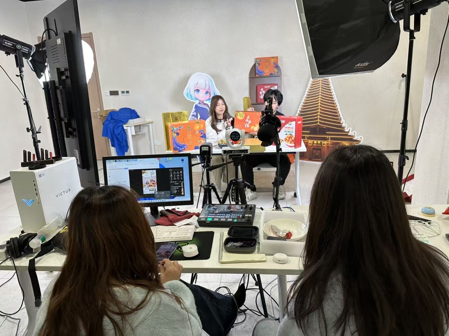 目前,智慧商旅产业学院开设了沉浸式直播实训基地与数字营销实训室,引入真实电商项目与助农直播任务,累计开展主题直播百余场,同时对接乡村振兴开展一村一品一网红电商帮扶培训,推动非遗文创、特色农产品线上推广,形成产业赋能+教育育人+社会服务融合发展模式。