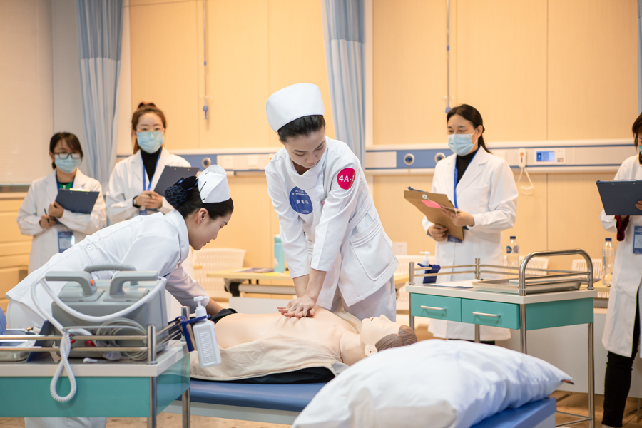 现代健康产业学院与仁济医院、上海市第四人民医院、江湾医院等多家三甲及区域核心医疗机构深度合作,共建现代学徒制“仁济班”,共同开发临床护理、康养照护类课程与实训教材,共建仿真护理实训中心与认知症功能实训室,构建“学校+ 医院+社区”三位一体育人模式。