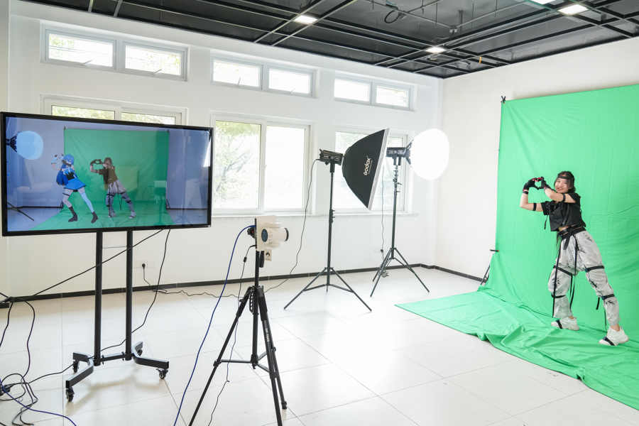 有趣的是,不仅有真人主播,还有数字虚拟人同屏直播,虚拟数字人的动作捕捉也来自上海南湖职业技术学院的学生。这正是上海南湖职业技术学院实战化育人、产教融合的体现之一。