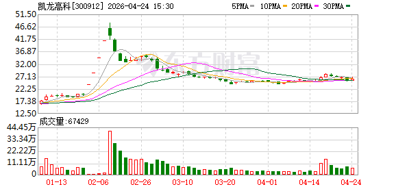 4月26日,凯龙高科(300912)公布2026年一季报,公司营业收入为1.76亿元,同比上升2.9%;归母净利润自去年同期亏损586万元成功扭亏,实现归母净利润1011万元;扣非归母净利润自去年同期亏损1477万元变为亏损1885万元,亏损额进一步扩大;经营现金流净额为-2093万元,同比增长17.2%;EPS(全面摊薄)为0.0888元。
