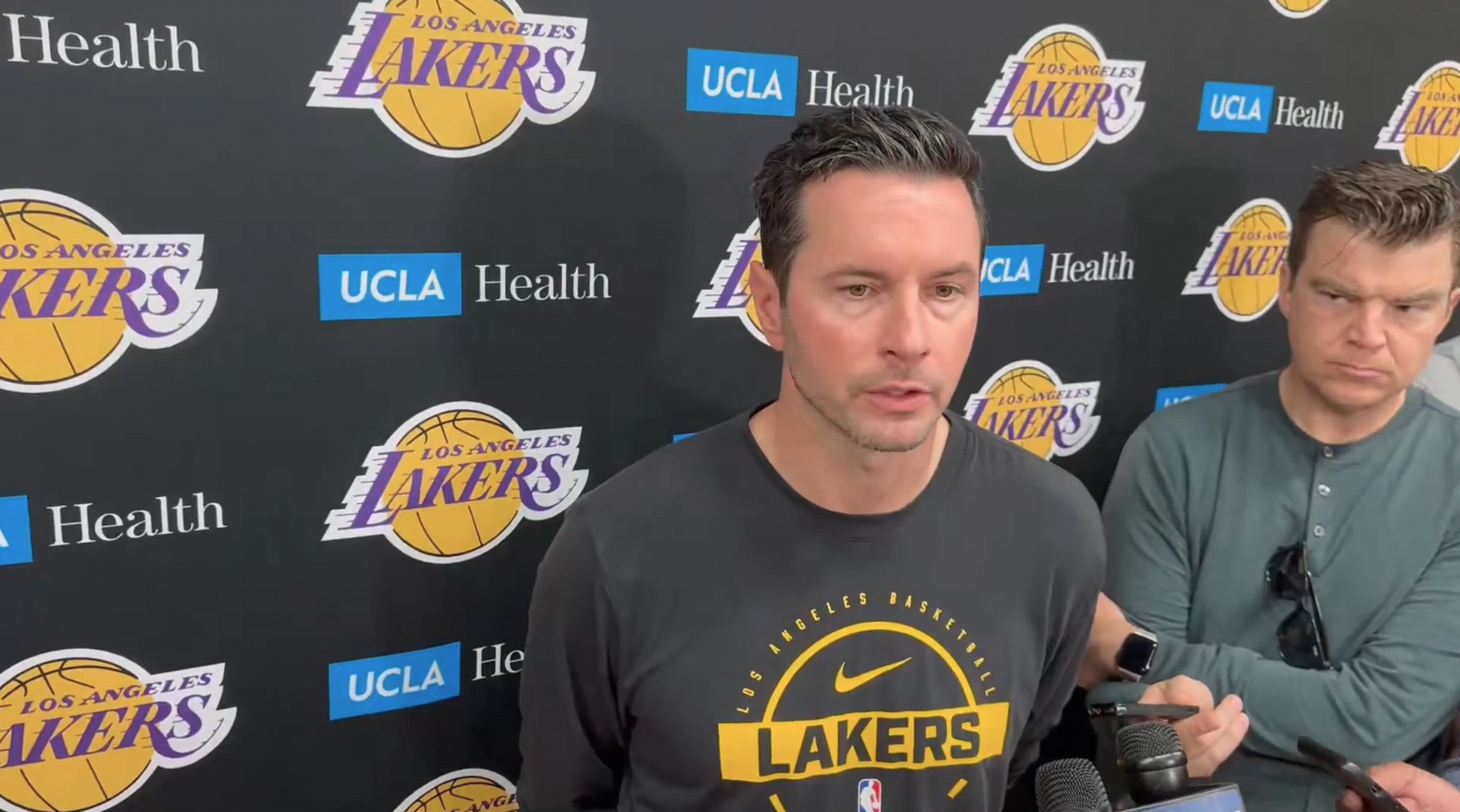虎扑04月15日讯 据湖人随队记者Dave McMenamin报道,湖人主帅JJ-雷迪克今日在接受采访时,更新了卢卡-东契奇和奥斯汀-里夫斯的伤情。